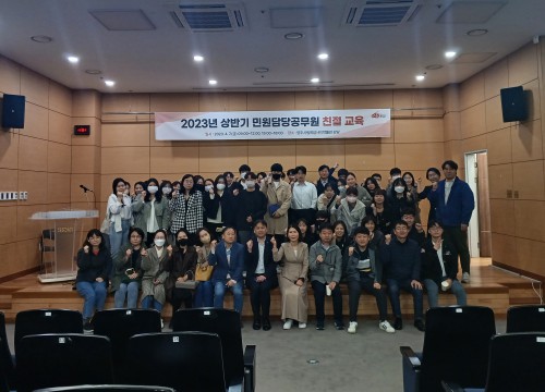 ¾çÁÖ½Ã(½ÃÀå °¼öÇö)´Â Áö³ 7ÀÏ ¾çÁֽø³È¸¾Ï»çÁö¹Ú¹°°ü °´ç¿¡¼ ¹Î¿ø´ã´ç °ø¹«¿ø 150¿© ¸íÀÌ Âü¼®ÇÑ °¡¿îµ¥ ‘2023³âµµ »ó¹Ý±â ¹Î¿ø´ã´ç°ø¹«¿ø Ä£Àý ±³À°’À» ½Ç½ÃÇß´Ù.