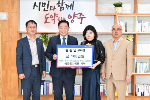 ¾çÁÖ½Ã(½ÃÀå °¼öÇö)´Â Áö³ 10ÀÏ ±Ç¼ø³² Á÷Àå·°øÀå »õ¸¶À»¿îµ¿ ¾çÁÖ½ÃÇùÀÇȸ ºÎȸÀåÀÌ ½ÃûÀ» ¹æ¹®ÇØ ¾çÁֽà ¾î·Á¿î ÀÌ¿ôÀ» µ½´Âµ¥ ½á´Þ¶ó¸ç ¼º±Ý 100¸¸¿øÀ» ±âºÎÇß´Ù°í ¹àÇû´Ù.