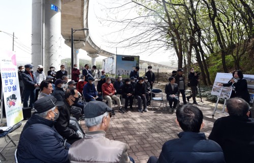 ±èµ¿±Ù ÀÇÁ¤ºÎ½ÃÀåÀº È¿ÀÚ¿ªÀ» ¹æ¹®ÇØ ¾î¸£½Åµé°ú Àλ縦 ³ª´©°í ÇϺΠ°ø°£À» µÑ·¯ºÃ´Ù. ÀÌÈÄ ½°ÅÍ Á¶¼º »ç¾÷ ÃßÁø °æ°ú¿¡ ´ëÇØ °ÇÃà»ç·ÎºÎÅÍ ¼³¸íÀ» µè°í ¾î¸£½Å 30¿© ¸í°ú ½°ÅÍ Á¶¼º ¹× °ø°£ Ȱ¿ë¹æ¾È µî¿¡ ´ëÇØ ³íÀÇÇß´Ù.