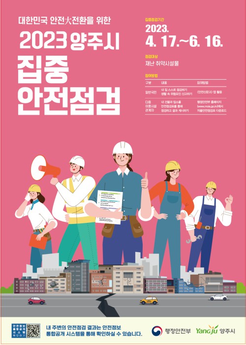 ½Ã´Â ÁýÁß ¾ÈÀüÁ¡°ËÀÇ ÃѰý Á¶Á¤À» À§ÇØ ±Ýö¿Ï ¾çÁֺνÃÀåÀ» ´ÜÀåÀ¸·Î ÇÏ´Â ¾çÁֽà ÁýÁß ¾ÈÀüÁ¡°Ë ÃßÁø´ÜÀ» ±¸¼ºÇÏ°í ¼Ò°ü ½Ã¼³¹°¿¡ ´ëÇØ ºÐ¾ßº° Àü¹®°¡¿Í ÇÔ²² ¹Î°üÇÕµ¿À¸·Î ¾ÈÀüÁ¡°ËÀ» ½Ç½ÃÇÑ´Ù.