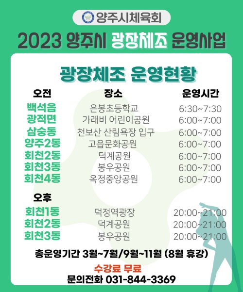 ¾çÁÖ½ÃüÀ°È¸(ȸÀå ÀÓÀç±Ù)°¡ ½Ã¹Î °Ç° ÁõÁø°ú °Ç°½Çõ ºÐÀ§±â Á¶¼ºÀ» À§ÇØ ¾ß¿Ü ½ÅüȰµ¿ ÇÁ·Î±×·¥ ‘2023³â ¾çÁֽà ±¤ÀåüÁ¶ °ÁÂ’¸¦ ¿î¿µÇÑ´Ù.