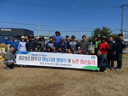 ¾çÁÖ»ç¶û ³óÇùºÀ»ç´Ü(ÁöºÎÀå ¿ÀÁ¤¼ö)Àº 4¿ù 19ÀÏ ¾çÁֽà ¹é¼®À¾ º¹Áö¸®¿¡¼ 30¿©¸íÀÇ ³óÇùºÀ»ç´Ü ȸ¿ø°ú ³ó¾÷ÀδÜüµéÀÌ ÇÔ²² ³óÃÌÀϼյ½±â¿Í '23³â Àü±¹ µ¿½Ã ¿µ³óÁö¿ø ¹ß´ë½Ä'À» °¡Á³´Ù.