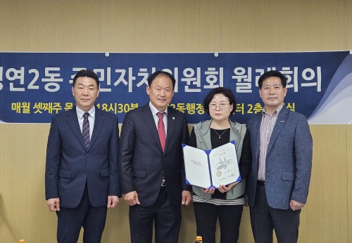 µ¿µÎõ½Ã »ý¿¬2µ¿ ÁÖ¹ÎÀÚÄ¡À§¿øÈ¸(À§¿øÀå Ȳ¿ëÅÃ)´Â Áö³ 20ÀÏ ¿ù·ÊȸÀǸ¦ °³ÃÖÇÏ°í ±è¹¦¼ø À§¿øÀ» ½Å±Ô À§ÃËÇß´Ù.