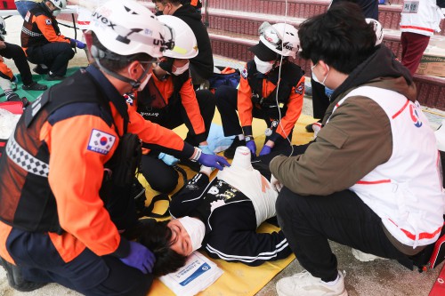 ‘´Ù¼ö»ç»óÀÚ ´ëÀÀ’ »óȲ¿¡¼´Â ±¸±Þ´ë¿øÀÌ ½ÉÁ¤Áö ȯÀÚ¸¦ ¼Ò»ý½Ã۱â À§ÇØ ¿µ»ó ÀÇ·á Áöµµ ½Ç½Ã, Æø¹ß ½Ã Ç㸮 ÁßÁõȯÀÚ ÀÀ±Þóġ, º¹ºÎ °üÅë¿¡ µû¸¥ °ú´ÙÃâÇ÷ ¾Ð¹Ú ÁöÇ÷, ¿ìÃø Á¾¾Æ¸® °³¹æ¼º °ñÀýȯÀÚ ÀÀ±Þóġ µî ´Ù¼ö»ç»óÀÚ ¹ß»ý »óȲ¿¡ ´ëÀÀÇß´Ù. ÀÇÁ¤ºÎ¼º¸ðº´¿ø µî ±¸±Þ ÀηµéÀº ÇöÀå ÀÀ±ÞÀÇ·á¼Ò ³»¿¡¼ ÁßÁõµµ ºÐ·ù ¹× ÀÀ±Þóġ ÈÄ º´¿øÀ¸·Î À̼ÛÇÏ´Â ÈÆ·ÃÀ» ½Ç½ÃÇß´Ù.