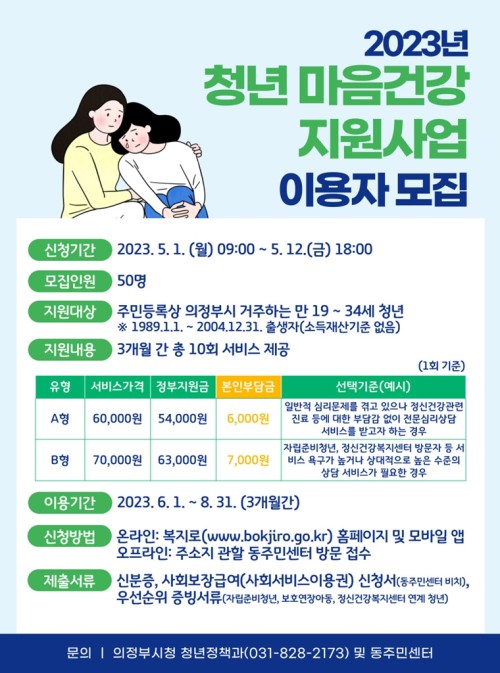 ÀÇÁ¤ºÎ½Ã(½ÃÀå ±èµ¿±Ù)´Â û³âÀÇ »îÀÇ Áú Çâ»ó°ú °Ç°ÇÑ »çȸ ±¸¼º¿øÀ¸·Î¼ÀÇ ¿ªÇÒÀ» ÃËÁøÇϰíÀÚ ‘û³â ¸¶À½°Ç° Áö¿ø»ç¾÷’ ÀÌ¿ëÀÚ¸¦ 5¿ù 1ÀϺÎÅÍ 12ÀϱîÁö ¸ðÁýÇÑ´Ù.