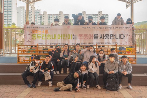 µ¿µÎõ¼Û³»ÃʵîÇб³´Â Á¸Áß¾î »ç¿ë ±³À° 3ÁÖ³âÀ» ¸ÂÀÌÇÏ¿© Á¶È¸´ë ¾ç¿· È´Ü¿¡ ‘Á¸Á߾ µé¸®´Â »êÃ¥±æ, Á¸Á߾ º¸ÀÌ´Â »êÃ¥±æ’À» Á¶¼ºÇÏ¿´´Ù.