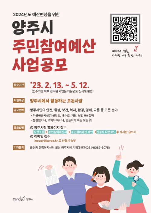 ¾çÁÖ½Ã(½ÃÀå °¼öÇö)°¡ 2024³âµµ ¿¹»êÆí¼ºÀ» À§ÇÑ ‘ÁÖ¹ÎÂü¿©¿¹»ê Á¦¾È»ç¾÷’ °ø¸ð±â°£À» ¿À´Â 12ÀϱîÁö ¿¬ÀåÇÑ´Ù.