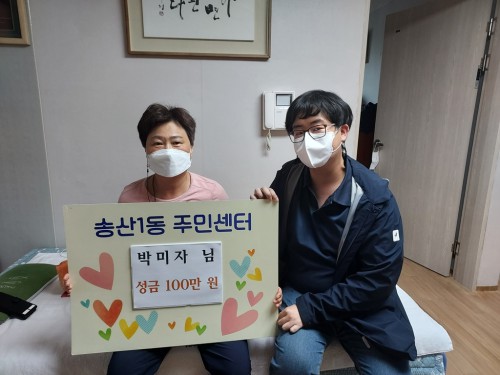 ÀÇÁ¤ºÎ½Ã ¼Û»ê1µ¿ Áֹμ¾ÅÍ(µ¿Àå À̼ºÈñ)´Â ÁֹΠ¹Ú¹ÌÀÚ ¾¾°¡ 5¿ù 8ÀÏ ‘¾î·Á¿î ÀÌ¿ôÀ» µ½°í ½Í´Ù’¸ç ¼º±Ý 100¸¸ ¿øÀ» ±âºÎÇß´Ù°í ¹àÇû´Ù.