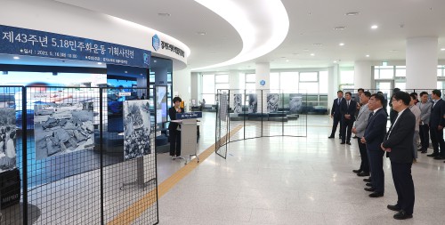 °æ±âµµÀÇȸ ±³¼·´Üü ´õºÒ¾î¹ÎÁÖ´ç(´ëÇ¥ÀÇ¿ø ³²Á¾¼·, ¿ëÀÎ3)´Â 5·18 ¹ÎÁÖȿ 43ÁÖ³âÀ» ¾ÕµÎ°í 16ÀÏ °æ±âµµÃ» 1Ãþ ·Îºñ¿¡¼ “Á¦43ÁÖ³â 5·18 ¹ÎÁÖȿ ±âȹ»çÁøÀü” °³¸·½ÄÀ» °³ÃÖÇß´Ù.