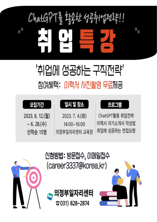 ÀÇÁ¤ºÎ½Ã(½ÃÀå ±èµ¿±Ù)´Â 7¿ù 4ÀÏ ÀÏÀÚ¸®¼¾ÅÍ¿¡¼ °ü³» ±¸Á÷ÀÚ¸¦ À§ÇÑ ‘Ãë¾÷¿¡ ¼º°øÇÏ´Â ±¸Á÷Àü·«’ Ãë¾÷Ư°À» ½Ç½ÃÇÑ´Ù.