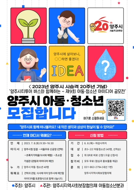 ¾çÁÖ½ÃÁö¿ª»çȸº¸ÀåÇùÀÇü(°øµ¿À§¿øÀå äÁ¤¼±)´Â ¿À´Â 7¿ù 8ÀÏ ¾çÁֽà ½Ã½Â°Ý 20ÁÖ³âÀ» ±â³äÇÏ¿© ‘Á¦9ȸ ¾çÁֽà ¾Æµ¿·Ã»¼Ò³â ¾ÆÀ̵ð¾î °ø¸ðÀü’À» ½Ç½ÃÇÑ´Ù.