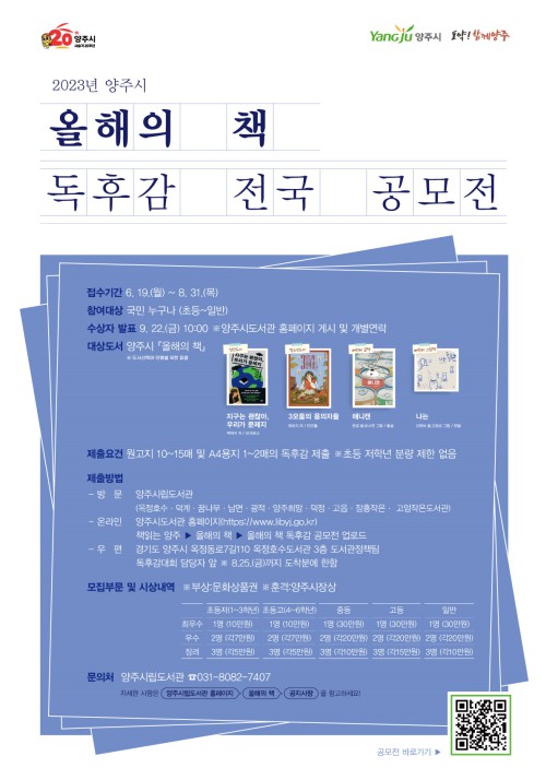 ¾çÁÖ½Ã(½ÃÀå °¼öÇö)´Â ‘Ã¥ Àд µµ½Ã ¾çÁÖ’ Á¶¼ºÀ» À§ÇØ ‘2023³â ¾çÁֽà ¿ÃÇØÀÇ Ã¥’À» ´ë»óÀ¸·Î µ¶Èݨ Àü±¹ °ø¸ðÀüÀ» °³ÃÖÇÑ´Ù°í 12ÀÏ ¹àÇû´Ù.