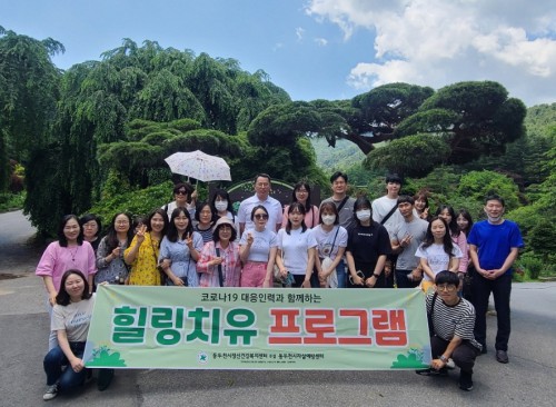 µ¿µÎõ½Ã Á¤½Å°Ç°º¹Áö¼¾ÅÍ(¼¾ÅÍÀå ¹ÚÂùÈ£)´Â Áö³ 9ÀÏ °¡Æò ¾ÆÄ§°í¿ä¼ö¸ñ¿ø¿¡¼ Äڷγª19 ÇöÀå ´ëÀÀ Àη ¹× ¾÷¹« À¯°æÇèÀÚ 30¸íÀ» ´ë»óÀ¸·Î “Äڷγª19 ±Øº¹ Èú¸µ ÇÁ·Î±×·¥”À» ÁøÇàÇß´Ù.