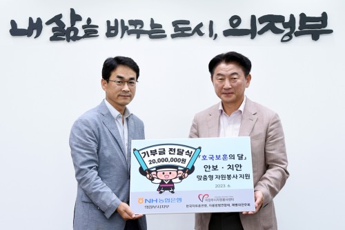 ÀÇÁ¤ºÎ½Ã(½ÃÀå ±èµ¿±Ù)´Â 6¿ù 15ÀÏ NH³óÇùÀºÇà ÀÇÁ¤ºÎ½ÃÁöºÎ°¡ È£±¹º¸ÈÆÀÇ ´ÞÀ» ¸Â¾Æ °ü³» ¾Èº¸‧Ä¡¾È´Üü¸¦ À§ÇØ ½á´Þ¶ó¸ç ÀÇÁ¤ºÎ½ÃÀÚ¿øºÀ»ç¼¾Å͸¦ ÅëÇØ ¼º±Ý 2õ¸¸ ¿øÀ» Àü´ÞÇß´Ù°í ¹àÇû´Ù.
