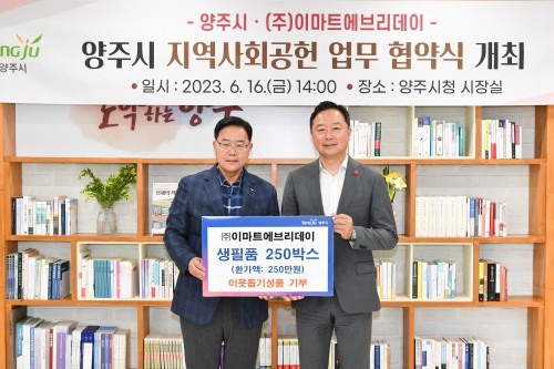 À̳¯ Çù¾à½Ä¿¡´Â °¼öÇö ¾çÁÖ½ÃÀå, À̸¶Æ®¿¡ºê¸®µ¥ÀÌ ±è¸Í Áö¿øº»ºÎÀåÀ» ºñ·ÔÇÑ ÁÖ¿ä °ü°èÀÚµéÀÌ Âü¼®ÇÑ °¡¿îµ¥ Áö¿ª ƯÈÇü ¼îÇÎ Ç÷§ÆûÀÎ ¢ßÀ̸¶Æ®¿¡ºê¸®µ¥ÀÌÀÇ »çȸÀû Ã¥ÀÓÀ» ½ÇõÇÏ¸ç ¾çÁÖ½Ã¿Í Áö¿ª»çȸ »ó»ý¹ßÀüÀ» Çù·ÂÇØ ³ª°¡±â·Î ¾à¼ÓÇß´Ù.