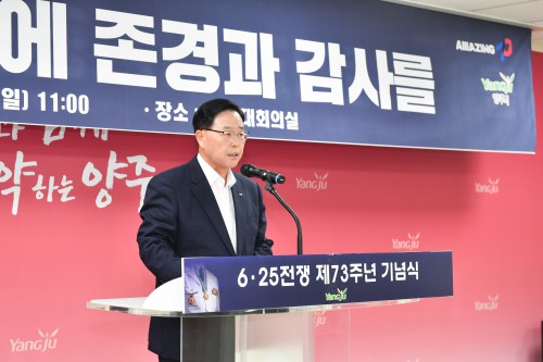 ¾çÁÖ½Ã(½ÃÀå °¼öÇö)´Â 25ÀÏ ½Ãû ´ëȸÀǽǿ¡¼ 6.·25 ÀüÀïÀÌ ³²±ä ¿ª»çÀû ±³ÈÆÀ» µÇ»õ±â°í È£±¹¿µ·É°ú ÂüÀü¿ë»çÀÇ ¼þ°íÇÑ Á¤½ÅÀ» ±â¸®´Â 6·25ÀüÀï Á¦73Áֳ⠱â³ä½ÄÀ» °³ÃÖÇß´Ù.