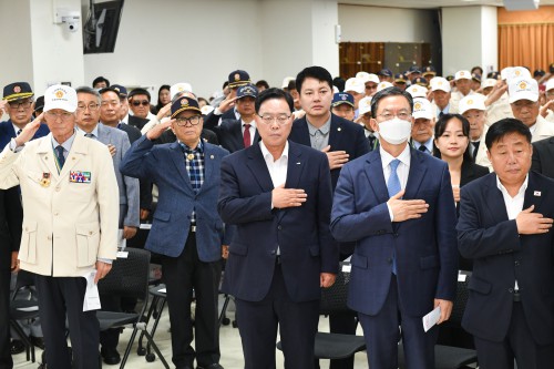 À̳¯ Çà»ç´Â °¼öÇö ½ÃÀå°ú Á¤¼ºÈ£ ±¹È¸ÀÇ¿ø, À±Ã¢Ã¶ ½ÃÀÇȸ ÀÇÀå, 6·25 ÂüÀüÀ¯°øÀÚ, À¯Á·, º¸ÈÆ·¾Èº¸´ÜüÀå ¹× È¸¿øµéÀÌ Âü¼®ÇØ ÀÚÀ¯ ´ëÇѹα¹À» ¼öÈ£ÇÑ ÂüÀü¿ë»çÀÇ Èñ»ý°ú Çå½Å¿¡ °¨»ç¿Í Á¸°æÀÇ ¸¶À½À» Àü´ÞÇß´Ù.