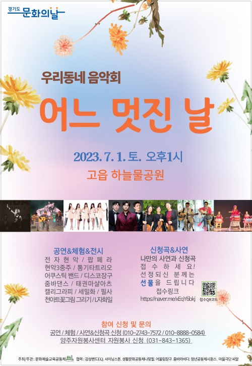 °æ±âµµ ÁÖ°ü ‘2023 ¹®ÈÀÇ ³¯ Áö¿ø»ç¾÷’ °ø¸ð ¼±Á¤À¸·Î ÁøÇàÇÏ´Â À̹ø À½¾Çȸ´Â ÀÏ»ó »ýȰ±Ç ³»¿¡¼ Áñ±æ ¼ö ÀÖ´Â ´Ù¾çÇÑ À帣ÀÇ ¹®ÈÇÁ·Î±×·¥À» À¯Ä¡ÇØ ½Ã¹ÎµéÀÇ ¹®ÈÀû ¿å±¸¸¦ ÃæÁ·½Ã۰í Áö¿ª ¹®È¿¹¼ú Ȱ¼ºÈ¸¦ µµ¸ðÇϱâ À§ÇØ ¸¶·ÃÇß´Ù.