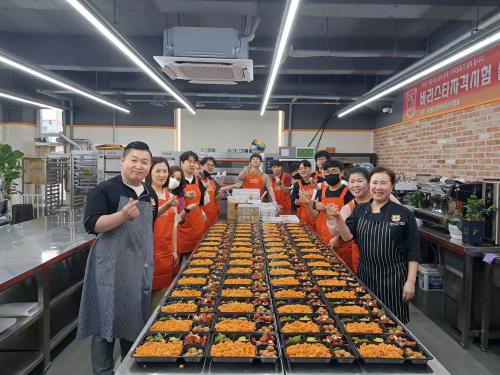 À̹ø ³ªÈ¥»ê ºÀ»ç´ÜÀÇ µµ½Ã¶ô ¸Þ´º´Â º£ÀÌÄÁ±èÄ¡ººÀ½¹ä, °¨ÀÚ±¹, ´ß°Á¤, ¿ÀÀ̰íÃßµÈÀ幫ħ µîÀ¸·Î ±¸¼ºµÇ¾úÀ¸¸ç Âü¿Ü¿Í ¿À·»Áö µî ¸Ô±â ÁÁ°Ô ¼ÕÁúÇÏ¿© ´ãÀº ÈĽÄ, ¸Á°í ĵ À½·á°¡ ÇÔ²² ÁغñµÇ¾ú´Ù.