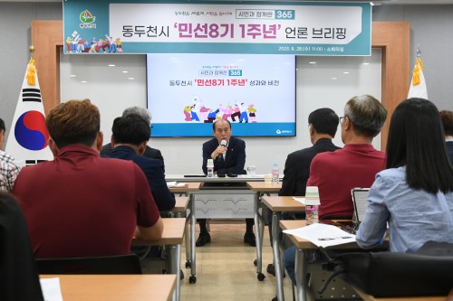 ¹ÚÇü´ö µ¿µÎõ½ÃÀåÀº ¹Î¼±8±â Ãâ¹ü 1ÁÖ³âÀ» ¸Â¾Æ Áö³ 28ÀÏ ½Ãû ¼ÒȸÀǽǿ¡¼ ¾ð·ÐÀÎ 30¿© ¸íÀÌ Âü¼®ÇÑ °¡¿îµ¥ ¾ð·Ð ºê¸®ÇÎÀ» °³ÃÖÇß´Ù.
