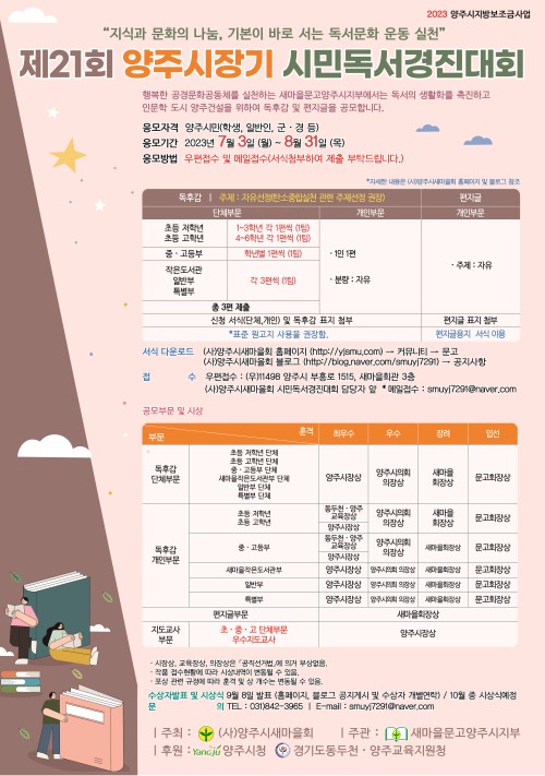 ¾çÁֽûõ¸¶À»¹®°í´Â ¾çÁֽùÎÀ» ´ë»óÀ¸·Î ‘Á¦21`ȸ ¾çÁÖ½ÃÀå±â ½Ã¹Îµ¶¼ °æÁø´ëȸ’¸¦ °³ÃÖÇÑ´Ù°í ¹àÇû´Ù.