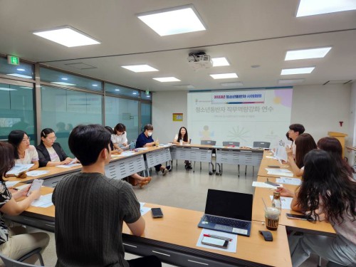 Áö³ 6¿ù 28ÀÏ Ã»¼Ò³âµ¿¹ÝÀÚ 18¸íÀ» ´ë»óÀ¸·Î ‘Áö¿ª»çȸ û¼Ò³â¾ÈÀü¸ÁÀÇ ÀÌÇØ¿Í ¿¬°èȰµ¿’À» ÁÖÁ¦·Î Á÷¹«¿ª·®°È ±³À°À» ½Ç½ÃÇÏ¿´´Ù. ±³À°¿¡¼´Â ÅëÇÕÀû Áö¿øÀÌ ÇÊ¿äÇÑ Ã»¼Ò³â »ó´ã¿¡ ´ëÇÑ ÀÌÇØ¿Í Áö¿ª»çȸ Çù·Â°ú ÀÚ¿ø ¿¬°èÀÇ Á߿伺À» °Á¶ÇÏ¿´´Ù. ÀÌ¾î¼ 7¿ù 5ÀÏ¿¡´Â ‘Çб³Æø·Â»ç¾ÈÀÇ Ã³¸®ÀýÂ÷’¸¦ ÁÖÁ¦·Î ±³À°À» ½Ç½ÃÇÏ¿© Çб³Æø·Â °¡·ÇÇÇØ Çлý »ó´ã¿¡ ´ëÇÑ »ó´ã»çÀÇ ¿ª·®À» °ÈÇÒ ¿¹Á¤ÀÌ´Ù.