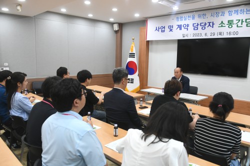 À̹ø ¼ÒÅë°£´ãȸ¿¡¼´Â ¹Ú ½ÃÀåÀÌ Á÷Á¢ »ç¾÷ ¹× °è¾à ´ã´ç °ø¹«¿øµé°ú ¼ÒÅëÀ» ÅëÇØ ¾Ö·Î»çÇ×À» ûÃëÇϰí û·Å ½ÇõÀ» À§ÇÑ Á÷¿ø ±³À°À» ÁøÇàÇÏ¿´´Ù.