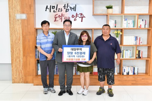 °¼öÇö ¾çÁÖ½ÃÀåÀº “ÀÌ·¸°Ô Áö¿ª»çȸ ¹ßÀü ¹× º¹Áö¿¡ °ü½ÉÀ» °¡Á®Áֽô ºÐµéÀÌ ÀÖ¾î, ¾çÁֽð¡ ´õ ¼ºÀåÇÏ°í µû¶æÇØÁú ¼ö ÀÖ´Ù°í »ý°¢ÇÑ´Ù”¸ç, “±âºÎÇØÁֽй°Ç°Àº ¾î·Á¿î ÀÌ¿ô¿¡°Ô Àß Àü´ÞÇϰڴٔ°í ¸»Çß´Ù.