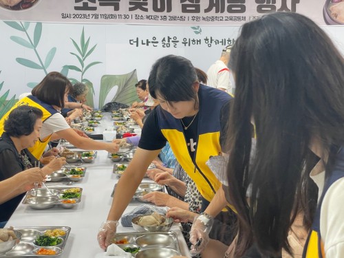À̳¯ Çà»ç´Â ³ì¾çÁßÇб³ ±³À°°øµ¿Ã¼ÀÇ ÈÄ¿øÀ¸·Î ³ì¾çÁ¾ÇÕ»çȸº¹Áö°ü °æ·Î½Ä´ç¿¡¼ Á÷Á¢ ¸¸µç »ï°èÅÁ 120ÀκÐÀ» ÁغñÇØ ³ì¾çÁßÇб³ Çкθð·ÇлýµéÀÌ Á¤¼ºÀÌ ´ã±ä º¸¾ç½Ä »ï°èÅÁÀ» Àü´ÞÇØ ´«±æÀ» ²ø¾ú´Ù.
