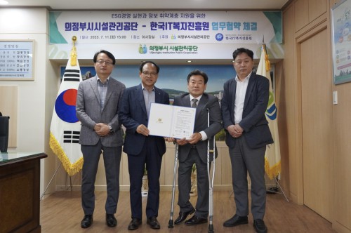 ÀÇÁ¤ºÎ½Ã½Ã¼³°ü¸®°ø´Ü(ÀÌ»çÀå ÀÓÇØ¸í)Àº ¹°Ç° Àç»ç¿ë ¹× ÀçȰ¿ëÀ» ÅëÇÑ ESG °æ¿µ ½Çõ°ú Á¤º¸ Ãë¾à°èÃþÀÇ ±³À°ÀÚ¿ø µî µðÁöÅÐ Á¤º¸°ÝÂ÷ ÇØ¼Ò¸¦ À§ÇÏ¿© ºñ¿µ¸® »çȸÀû±â¾÷ÀÎ (»ç)Çѱ¹ITº¹ÁöÁøÈï¿ø°ú 7¿ù 11ÀÏ, ¾÷¹«Çù¾àÀ» ü°áÇÏ¿´´Ù.