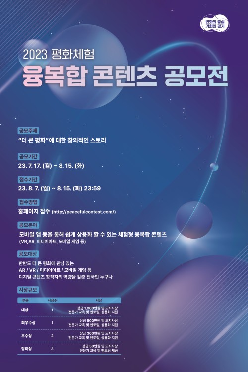 °ø¸ðÀüÀº ÆòÈ ºÐÀ§±â È®»ê°ú µð¿¥Áö(DMZ) ÀÏ¿ø È«º¸¸¦ À§ÇØ ‘´õ Å« ÆòÈ’¿Í °ü·ÃµÈ âÀÇÀûÀÎ ½ºÅ丮¸¦ ±â¹ÝÀ¸·Î ÇÑ ¸ð¹ÙÀÏ À¶º¹ÇÕ Ã¼ÇèÇü ÄÜÅÙÃ÷ ¹ß±¼ ¸ñÀûÀ¸·Î ¸¶·ÃµÆ´Ù.