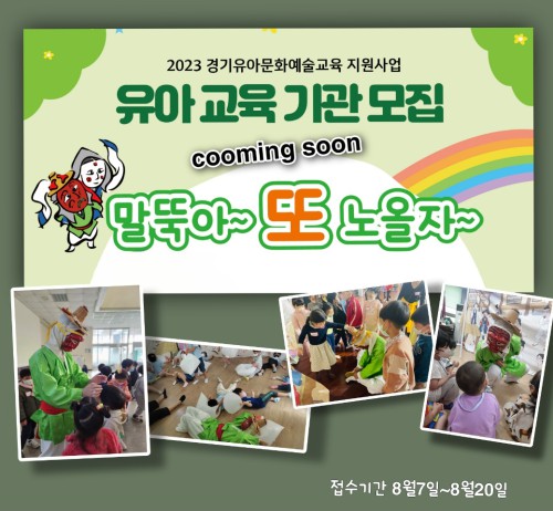 ¾çÁÖµµ½Ã°ø»ç´Â 2022³â °æ±â À¯¾Æ ¹®È¿¹¼ú±³À° Áö¿ø»ç¾÷¿¡ ¼±Á¤µÇ¾î ¿À´Â 9¿ù 4ÀϺÎÅÍ 12¿ù 7ÀϱîÁö “¸»¶Ò¾Æ~ ¶Ç ³ë¿ÃÀÚ~”¶ó´Â À¯¾Æ ¹®È¿¹¼ú ±³À°ÇÁ·Î±×·¥À» ¿î¿µÇÑ´Ù.