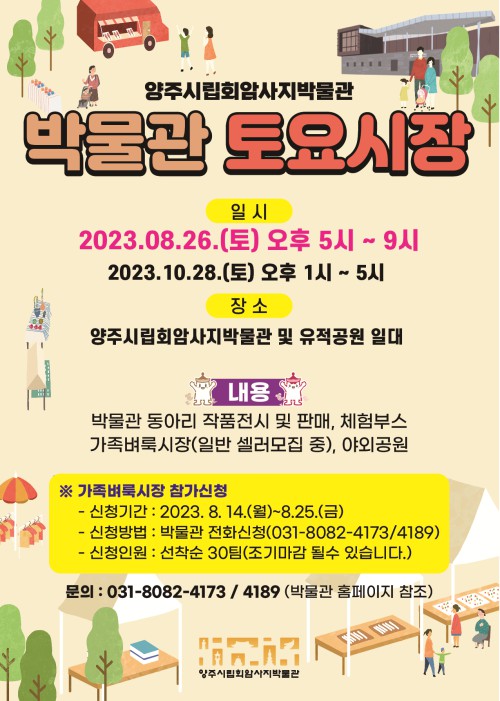 ½Ã °ü°èÀÚ´Â “Åä¿äÀÏ ÁÖ¸» Àú³á¿¡´Â ¾çÁֽø³È¸¾Ï»çÁö¹Ú¹°°üÀ¸·Î ³ªµéÀÌ ¿À¼Å¼ ‘¹Ú¹°°ü Åä¿ä½ÃÀå’ÀÇ ´Ù¾çÇÑ ÇÁ·Î±×·¥À» Áñ±â°í, ´õÀ§¿¡ ÁöÄ£ ¸¶À½À» ȸ¾Ï»çÁöÀÇ ¾Æ¸§´Ù¿î ¾ß°æ°ú ¹®È üÇèÀ¸·Î Ãß¾ïÀ» °¡µæ ´ã¾Æ°¡½Ã±æ ¹Ù¶õ´Ù”°í ÀüÇß´Ù.