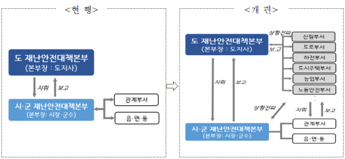¿ì¼± µµ´Â Àç³»óȲ °ü¸®Ã¼°è¸¦ Áï½Ã °³ÆíÇÑ´Ù. ±×°£ ½Ã¼³º° »çÀüÁ¡°ËÀº ¼Ò°üºÎ¼¿¡¼ ¼öÇàÇϰí, ºñ»ó½Ã Àç³¾ÈÀü´ëÃ¥º»ºÎ¸¦ Áß½ÉÀ¸·Î Àç³»óȲ½Ç¿¡¼ ´ëóÇß¾ú´Ù. ±×·¯³ª °©ÀÛ½º·¯¿î Àç³ »óȲ¿¡´Â ½Å¼ÓÇÑ ÇöȲ ÆÄ¾ÇÀÌ ¾î·Á¿ö Àû½Ã ÅëÁ¦ ¹× ´ëó¿¡ ÇѰ谡 ÀÖ´Ù°í ÀνÄÇß´Ù. ÀÌ¿¡ µµ·Î, ÇÏõ, °Ç¼³ÇöÀå, »ê¸², ³ó¾÷, ÁÖÅÃºÐ¾ß µî ºÐ¾ßº°·Î Àç³¾ÈÀü´ëÃ¥º»ºÎ¿Í ½Ç½Ã°£ Àç³Á¤º¸¸¦ °øÀ¯ÇÒ ¼ö ÀÖ´Â °ü·Ã ºÎ¼ ÀÚü»óȲ½ÇÀ» ½Ç¹«¹ÝÀ¸·Î Æí¼º·¿î¿µÇØ ½Å¼ÓÇÑ ´ëÀÀÀ» °ÈÇÒ ¹æÄ§ÀÌ´Ù.
