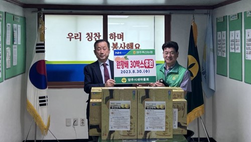 ¾çÁÖÃà»ê³óÇù(´ëÇ¥ ÀÌÈı¤, ÀÇÁ¤ºÎ½Ã ¼ÒÀç)´Â Áö³ 30ÀÏ »ç´Ü¹ýÀÎ ¾çÁֽûõ¸¶À»È¸(ȸÀå ±è¿ëÃá)¸¦ Á÷Á¢ ¹æ¹®ÇÏ¿© ¿øÈ²¹è 30¹Ú½º(120¸¸¿ø »ó´ç)¸¦ ÈÄ¿øÇÏ¿´´Ù.