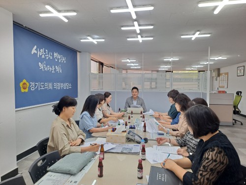 °æ±âµµÀÇȸ °Ç¼³±³ÅëÀ§¿øÈ¸ ¿À¼®±Ô ÀÇ¿ø(´õºÒ¾î¹ÎÁÖ´ç, ÀÇÁ¤ºÎ4)ÀÌ 1ÀÏ °æ±âµµÀÇȸ ÀÇÁ¤ºÎ»ó´ã¼Ò¿¡¼ ÀÇÁ¤ºÎ½Ã¾î¸°ÀÌÁý¿¬ÇÕȸ °ü°èÀÚµé°ú ¸¸³ª ¿µ¾Æ(¸¸0~2¼¼) ¾î¸°ÀÌÁý º¸À°·á¿Í ±Þ½Äºñ ºÐ¸®Áö¿ø µî Á¦µµ°³¼± ¹æ¾ÈÀ» ³íÀÇÇß´Ù.