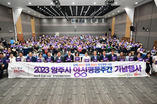 ¾çÁÖ½Ã(½ÃÀå °¼öÇö)´Â Áö³ 5ÀÏ °æ±â¼¶À¯Á¾ÇÕÁö¿ø¼¾ÅÍ¿¡¼ ¾ç¼ºÆòµîÁÖ°£(9.1.~9.7)À» ¸Â¾Æ‘ÇÔ²² ÀÏÇϰí, ÇÔ²² µ¹º¸´Â ¾ç¼ºÆòµî »çȸ’¶ó´Â ÁÖÁ¦·Î‘2023³â ¾çÁֽà ¾ç¼ºÆòµîÁÖ°£ ±â³äÇà»ç’¸¦ °³ÃÖÇß´Ù.