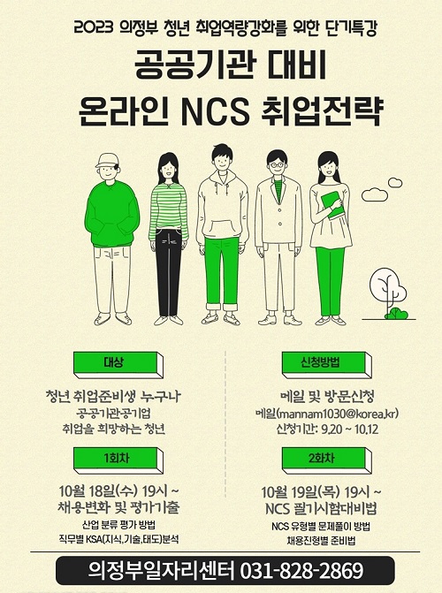 ÀÇÁ¤ºÎ½Ã(½ÃÀå ±èµ¿±Ù)´Â 9¿ù 20ÀϺÎÅÍ 10¿ù 12ÀϱîÁö û³â Ãë¾÷Áغñ»ýµéÀ» À§ÇÑ Ãë¾÷¿ª·® °È ÇÁ·Î±×·¥ ‘°ø°ø±â°ü ´ëºñ ¿Â¶óÀÎ NCS Ãë¾÷Àü·« Ư°’ Âü¿©ÀÚ¸¦ ¸ðÁýÇÑ´Ù.