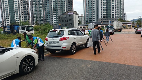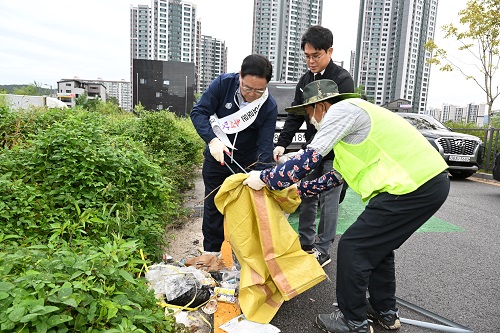 À̳¯ ´ëû¼Ò¿¡´Â °¼öÇö ¾çÁÖ½ÃÀå, ¹Ú¼º³² ºÎ½ÃÀåÀ» ºñ·ÔÇØ ȸõ2µ¿ °¢ »çȸ´Üü, ½Ã Á÷¿ø µî 100¿© ¸íÀÌ Âü¿©ÇØ ¾ÆÄ§ºÎÅÍ µµ·Îº¯¿¡ ¹ö·ÁÁ® ÀÖ´Â ¾²·¹±â ¾à 500kgÀ» ¼ö°ÅÇÏ¸ç ±¸½½¶¡À» Èê·È´Ù.