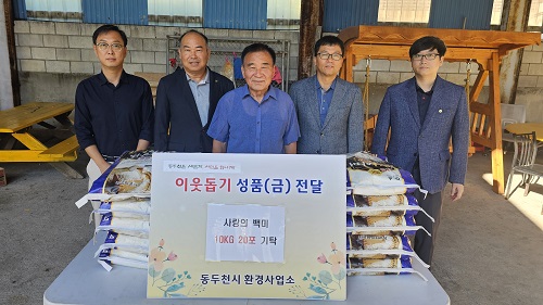 µ¿µÎõ½Ã ȯ°æ»ç¾÷¼Ò´Â °ø°øÇϼö󸮽ü³ ¼³Ä¡¸¦ °è±â·Î ¼Ò¿ä13Åë°ú Àο¬À» ¸Î¾ú´Ù. ¶ÇÇÑ ¸Å³â °£´ãȸ¸¦ °³ÃÖÇÏ´Â µî Çù·ÂÀûÀÎ °ü°è¸¦ À̾î¿À°í ÀÖÀ¸¸ç À̹ø Ãß¼®¿¡´Â ¸¶À»ÀÇ ¾î·Á¿î ÀÌ¿ôÀ» µ½°íÀÚ Á÷¿øµéÀÌ ½Ê½ÃÀÏ¹Ý ¼º±ÝÀ» ¸ð¾Æ ¹é¹Ì 20Æ÷¸¦ Àü´ÞÇß´Ù.