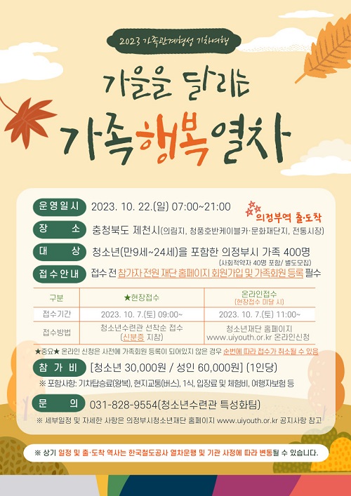 ÀÇÁ¤ºÎ½Ãû¼Ò³âÀç´Ü(´ëÇ¥ÀÌ»ç °æ±Ô°ü) û¼Ò³â¼ö·Ã°ü(°üÀå Á¶°æ¼)Àº 10¿ù 22ÀÏ °ü³» û¼Ò³â °¡Á· 400¸íÀ» ´ë»óÀ¸·Î Áö¿ª»çȸ öµµÀÚ¿ø°ú ¿¬°èÇÏ¿© ÀÇÁ¤ºÎ¿ª Ãâ¹ß, Á¦Ãµ¿ª¿¡ µµÂøÇÏ´Â ±âÂ÷¿©Çà ÇÁ·Î±×·¥‘°¡À»À» ´Þ¸®´Â °¡Á·Çູ¿Â÷’¸¦ ¿î¿µÇÑ´Ù.