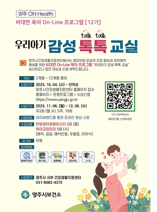 ¾çÁÖ½Ã(½ÃÀå °¼öÇö)´Â ¿µÀ¯¾ÆÀÇ °Ç°ÁõÁø°ú ¸ð¾Æ ¾ÖÂø Çü¼ºÀ» À§ÇÑ ºñ´ë¸é On-Line À°¾Æ °Á ‘12±â ¿ì¸®¾Æ±â °¨¼º ÅåÅå ±³½Ç’À» ¿î¿µÇÑ´Ù°í 5ÀÏ ¹àÇû´Ù.