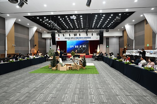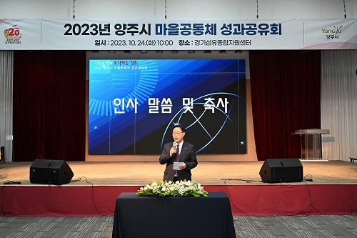 ¾çÁÖ½Ã(½ÃÀå °¼öÇö)´Â 24ÀÏ °æ±â¼¶À¯Á¾ÇÕÁö¿ø¼¾ÅÍ¿¡¼ 2023³â °ø¸ð»ç¾÷¿¡ ¼±Á¤µÈ °øµ¿Ã¼ ȸ¿ø 100¿©¸íÀÌ Âü¼®ÇÑ °¡¿îµ¥ ‘2023³â ¾çÁֽà ¸¶À»°øµ¿Ã¼ ¼º°ú°øÀ¯È¸’¸¦ °³ÃÖÇß´Ù.