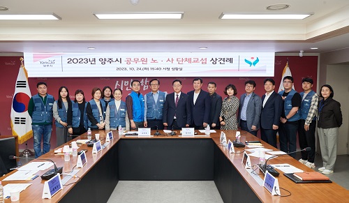 ¾çÁÖ½Ã(½ÃÀå °¼öÇö)´Â Áö³ 24ÀÏ ½Ãû »óȲ½Ç¿¡¼ ¾çÁֽðø¹«¿ø³ëµ¿Á¶ÇÕ(À§¿øÀå ±èµ¿Èñ)°ú 2023³â ´Üü±³¼·À» À§ÇÑ »ó°ß·Ê ÀÚ¸®¸¦ °¡Á³´Ù.