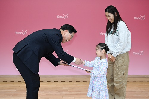 °¼öÇö ¾çÁÖ½ÃÀåÀº “¾ÆÀ̵鿡°Ô »óÀÚÅÔ¹çÀ» º¸±ÞÇÏ¿© »ý¸íÀÇ ¼ÒÁßÇÔ°ú °Ç°ÇÑ ¸Ô°Å¸®¿¡ ´ëÇÑ ¿Ã¹Ù¸¥ Áö½ÄÀ» Àü´ÞÇÒ ¼ö ÀÖ¾ú´Ù”°í Àü´ÞÇßÀ¸¸ç“³ó¾÷°ú ±³À°À» ¿¬°èÇÑ µµ½Ã³ó¾÷ ¹®È°¡ È®»êµÇ°í µµ½Ã¿Í ³óÃÌÀÌ ¼·Î µ½´Â °øµ¿Ã¼·Î »ó»ýÇÒ ¼ö ÀÖµµ·Ï Áö¿øÀ» ¾Æ³¢Áö ¾Ê°Ú´Ù”°í ¸»Çß´Ù.