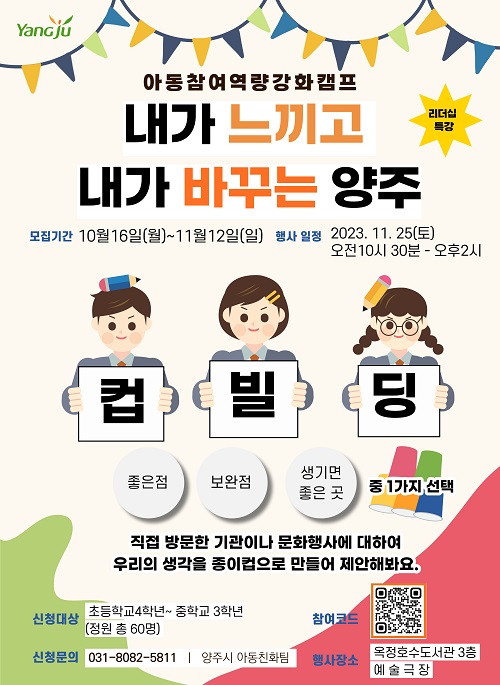 ¾çÁÖ½Ã(½ÃÀå °¼öÇö)´Â ¿À´Â 11¿ù 12ÀϱîÁö ‘³»°¡ ´À³¢°í ³»°¡ ¹Ù²Ù´Â ¾çÁÖ, ¾Æµ¿Âü¿© ¿ª·®°ÈÄ·ÇÁ’ÀÇ Âü¿©ÀÚ¸¦ ¸ðÁýÇÑ´Ù°í 31ÀÏ ¹àÇû´Ù.