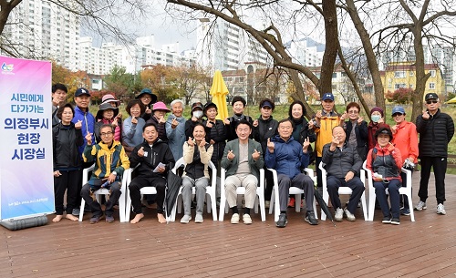 ±èµ¿±Ù ÀÇÁ¤ºÎ½ÃÀåÀÌ 11¿ù 3ÀÏ Áß¶ûõ ¹ß¹°½°ÅÍ¿¡¼ ÇöÀå½ÃÀå½ÇÀ» ¿°í ÃÖ±Ù Áß¶ûõ¿¡ Á¶¼ºµÈ °Ç°Èë±æ¿¡ °üÇØ ½Ã¹ÎµéÀÇ ¸ñ¼Ò¸®¸¦ µé¾ú´Ù.