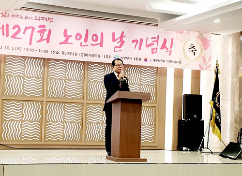 ±èµ¿±Ù ÀÇÁ¤ºÎ½ÃÀåÀº “Á¦27ȸ ³ëÀÎÀÇ ³¯ ±â³ä ǥâ ¼ö»óÀÚµéÀ» ÃàÇÏÇϸç, ½Ã ¹ßÀü°ú ³ëÀκ¹Áö ÁõÁøÀ» À§ÇØ ±â¿©ÇÑ À¯°øÀںеéÀÇ ³ë°í¿¡ °¨»çµå¸°´Ù”¸ç, “¾ÕÀ¸·Îµµ ³ëÀκ¹Áö ÁõÁøÀ» À§ÇØ ´õ ¸¹Àº °ü½É°ú ³ë·ÂÀ» ±â¿ïÀ̰ڴٔ°í ¸»Çß´Ù.