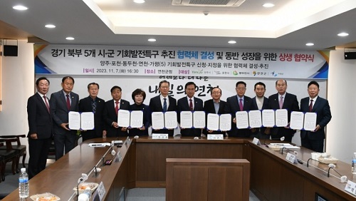µ¿µÎõ½Ã(½ÃÀå ¹ÚÇü´ö)´Â 7ÀÏ ¿¬Ãµ±ºÃ»¿¡¼ °æ±â ºÏºÎ 5°³ ½Ã․±º(¾çÁÖ, Æ÷õ, µ¿µÎõ, ¿¬Ãµ, °¡Æò)À» ´ëÇ¥ÇÏ´Â ´ÜüÀå, ½Ã±º ÀÇÀå ¹× Áö¿ª±¸ ±¹È¸ÀÇ¿øÀÌ Âü¼®ÇÑ °¡¿îµ¥ ¡¸°æ±â ºÏºÎ 5°³ ½Ã±º ±âȸ¹ßÀüƯ±¸ ÃßÁø Çù·Âü °á¼º ¹× µ¿¹Ý ¼ºÀåÀ» À§ÇÑ »ó»ý¡¡Çù¾à¡¹À» ü°áÇß´Ù.