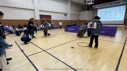 ´ëȸ ½ÃÀÛ Àü, ¾çÁÖ½ÃÀå¾ÖÀÎÁ¾ÇÕº¹Áö°ü µå·Ð¾ÆÆ¼½ºÆ®¹ÝÀÇ ±ºÁý ºñÇà °ø¿¬ÀÌ ÁøÇàµÇ¾úÀ¸¸ç, ÀÌ¾î¼ YDRC¾çÁÖµå·Ðµ¿È£È¸ÀÇ ¸ÚÁø FPV(First Person View)ºñÇàÀ» º¹Áö°ü ¿ÜºÎ Àü°æ°ú ³»ºÎ ÇÁ·Î±×·¥½ÇÀ» ½Ç½Ã°£ ¿µ»óÀ¸·Î °ü¶÷ÇÏ´Â ½Ã°£À» °¡Á³´Ù.